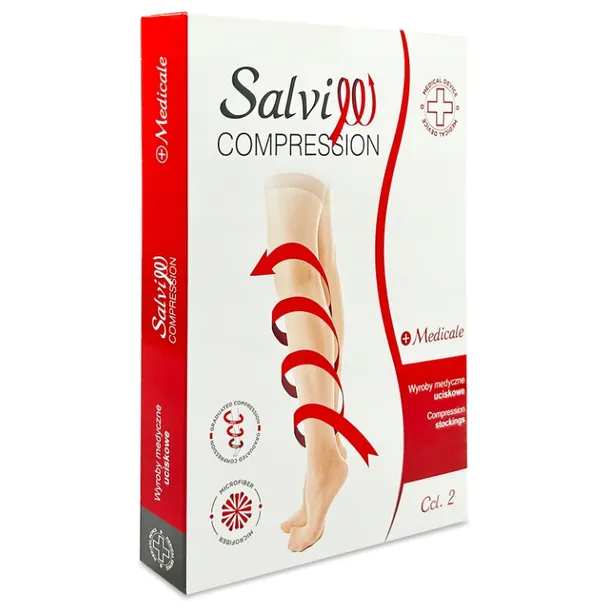 ⭐️Pończochy kompresyjne Salvi Medicale to wyrób medyczny klasy II, przeznaczony dla osób zmagających się z przewlekłą niewydolnością żylną, zaawansowanymi żylakami oraz obrzękami kończyn dolnych.